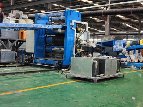 3)螺紋元件材質(zhì)為優(yōu)質(zhì)高速工具鋼6542,高溫真空淬火熱處理;整體硬度:HRC60-64;螺桿元件通過(guò)加工中心制作,由曲面成型磨加工;5、料筒1)材質(zhì):45#鋼為基體,∞內(nèi)孔采用優(yōu)質(zhì)雙合金襯套;共十二節(jié),L=290mm/節(jié),第一節(jié)筒體為進(jìn)料筒體,第六為自然排氣;第十節(jié)筒體為抽真空;其余筒體為閉口筒體,筒體采用軟水冷卻;2)加熱區(qū)段:進(jìn)料區(qū)不加熱,其他采用優(yōu)質(zhì)鑄鋁加熱器。6、水冷卻系統(tǒng)1)水泵泵電機(jī)功率:3kw;自動(dòng)控水電磁閥;手動(dòng)閥用銅閘閥控制;加大水流量,2)采用環(huán)保風(fēng)冷卻系統(tǒng)(環(huán)保型:發(fā)明專(zhuān)利號(hào):CN201911312134.6)不需要接外循環(huán)水冷卻,不用徘外水;采用閉環(huán)循環(huán)系統(tǒng)7水循環(huán)真空泵,功率:2.2KW,真空泵采用環(huán)保冷卻系統(tǒng)(環(huán)保型:發(fā)明專(zhuān)利號(hào):CN201911312115.3)不需要接外循環(huán)水冷卻,不用徘外水;8、液壓板式換網(wǎng):1)換網(wǎng)器,板式過(guò)濾自動(dòng)換網(wǎng)器,流量截面為圓形;2)液壓缸、液壓站等一套,采用YA-N46抗磨46#液壓油;(油品需客戶(hù)自行采購(gòu))TPE片材生產(chǎn)線(xiàn)_TPE腳墊片材生產(chǎn)線(xiàn)_佳德(三)片材模具:出料有效寬度2250mm;制品寬度2100mm;制品厚度1-3mm,單邊堵頭450mm模頭材料:P20鋼材,采用不銹鋼加熱棒;模頭流面鍍硬鉻處理。(四)三輥壓光機(jī)JDL-2300 《一套》1、機(jī)架采用型鋼焊接而成,有較高的鋼性。整個(gè)機(jī)架由兩件墻板、頂聯(lián)接板及底座組成,各安裝面均經(jīng)過(guò)機(jī)械加工,以確保安裝精度。形式:直立式2、減速箱、電動(dòng)機(jī)本機(jī)采用輥筒獨(dú)立傳動(dòng),每個(gè)輥筒軸端均配有一傳動(dòng)減速箱,傳動(dòng)平穩(wěn)、噪音低、效率高,結(jié)構(gòu)緊湊。電動(dòng)機(jī)采用交流變頻電機(jī),功率:2.2kw×3臺(tái);三輥線(xiàn)速度為0-6米分鐘