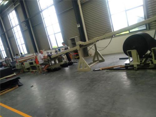 “三晶或羅賓漢”變頻器,計量泵最高轉(zhuǎn)數(shù) 0-60轉(zhuǎn)/分2)計量泵與減速箱連接,采用萬向聯(lián)軸器,泵的入口及出口各配一個壓力傳感器,PBAT片材擠出機(四)片材模具:產(chǎn)品要求:厚度0.8-1.5mm,公差±0.10;制品寬度:1000mm 1) 出料有效寬度1150mm;制品寬度1000mm;制品厚度0.8-1.5mm,模頭材料:P20鋼材,模頭流面鍍硬鉻處理(五)三輥壓光機JDL-1200 《一套》1、機架:采用型鋼焊接而成,有較高的鋼性。整個機架由兩件墻板、頂聯(lián)接板及底座組成,各安裝面均經(jīng)過機械加工,以確保安裝精度。2、減速箱、電動機:本機采用輥筒獨立傳動,每個輥筒軸端均配有一傳動減速箱,傳動 PBAT片材擠出機 平穩(wěn)、噪音低、效率高,結(jié)構(gòu)緊湊。電動機采用交流變頻電機,功率:1.5 kw×3臺;三輥線速度為0-10米分鐘3、輥筒組件1) 輥筒直徑:上輥φ400mm /中輥φ400mm/下輥φ400mm,輥面寬度1200mm2) 輥筒,輥筒控溫水進出口徑:11/4”輥筒圓度:0.005mm,輥筒同軸度:φ0.012mm輥筒表面粗糙度:Ra0.025μm,輥筒外圓表面淬硬HRC55~60,淬硬深度3~5mm;輥筒表面鍍硬鉻,t=0.08~0.10,輥筒壁厚:30mm4、輥筒調(diào)距裝置1) 輥筒上下采用電動渦輪蝸桿升降。微調(diào)為手動,并兩端可單獨調(diào)節(jié),調(diào)節(jié)范圍0-70mm,2) 輥筒間隙調(diào)整采用絲桿結(jié)構(gòu),手動微調(diào),微調(diào)范圍:1-5mm,刻度盤指示5、移動組件1) 整個移動組件由傳動系統(tǒng)、滾輪升降組件等組成,傳動電機功率:0.37kw采用雙級減速器傳動,移動平穩(wěn),亦可手動微調(diào)2)三輥前后移動導軌要求長度為:1500mm;導軌上要有預留固定孔;方便在客戶現(xiàn)場安裝膨脹螺絲