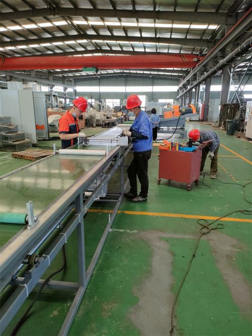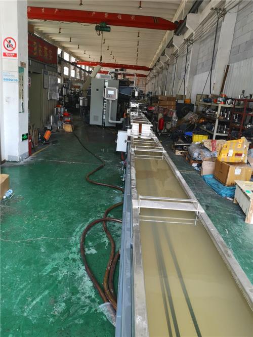 手動(dòng)閥用銅閘閥控制;加大水流量,2)采用環(huán)保風(fēng)冷卻系統(tǒng)(環(huán)保型:發(fā)明專利號(hào):CN201911312134.6)不需要接外循環(huán)水冷卻,不用徘外水;用閉環(huán)循環(huán)系統(tǒng)7.水循環(huán)真空泵;電機(jī)功率:3KW,真空泵采用環(huán)保冷卻系統(tǒng)(環(huán)保型:發(fā)明專利號(hào):CN201911312115.3)不需要接外循環(huán)水冷卻,不用徘外水;采用閉環(huán)循環(huán)系統(tǒng),節(jié)約水成本:功率:3KW真空泵8、液壓板式換網(wǎng):1)換網(wǎng)器,板式過濾自動(dòng)換網(wǎng)器,流量截面為圓形;2)液壓缸、液壓站等一套,采用YA-N46抗磨46#液壓油;(油品需客戶自行采購)9、機(jī)頭裝置:1) 熱電偶與壓力傳感器分開安裝,分別用于檢測溫度和壓力(三)水拉條輔機(jī) 1)水槽:一臺(tái),L=8米,加寬加深,槽體為不銹鋼材質(zhì);水槽與吸干機(jī)過度體一件;不銹鋼材質(zhì),水槽熱水經(jīng)過濾器到環(huán)保型冷卻器;水槽架里安裝:4組環(huán)保風(fēng)冷卻系統(tǒng)(環(huán)保型:發(fā)明專利號(hào):2020107265672)不需要接外循環(huán)水冷卻,不用徘外水;采用閉環(huán)循環(huán)系統(tǒng) 2)吹干機(jī):2套,功率2.2kw;與物料接觸件均為不銹鋼材質(zhì)。3)龍門切粒機(jī):壹臺(tái),功率11kw,變頻調(diào)速;切粒機(jī)動(dòng)刀刀口采用鎢鋼材質(zhì)4)加長振動(dòng)篩:工程塑料造粒代加工_工程改性料代加工_一臺(tái),L=2.5m,電機(jī)采用:震動(dòng)專用電機(jī);震動(dòng)量可以調(diào)節(jié)大小:電機(jī)功率率:0.55KW兩臺(tái);振動(dòng)篩篩網(wǎng)采用三層分離物料;大孔直徑φ8mm,小孔直徑φ2.5mm,不銹鋼材質(zhì),振動(dòng)篩出廠時(shí);振動(dòng)量調(diào)節(jié)到最小5)風(fēng)吹料倉:一套,1m料倉一件,不銹鋼材質(zhì);采用φ130mm不銹鋼管聯(lián)接;3kw物料輸送風(fēng)機(jī)。